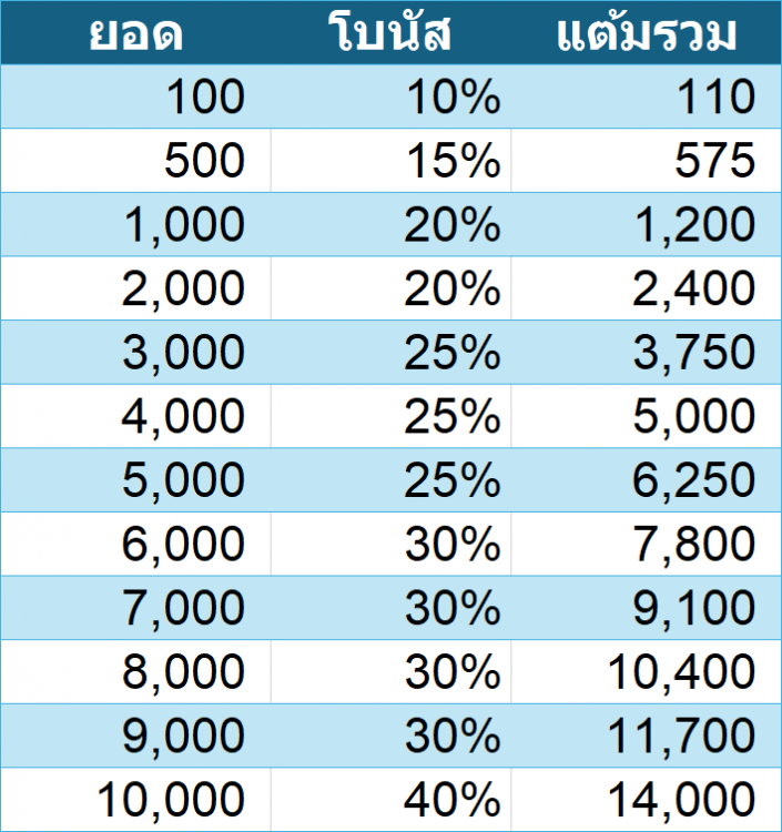 ตอนนี้มีช่องทางเดียวนะครับ คือโอนผ่าน บัญชีธนาคารกสิกร (K-Bank) เลขที่บัญชี 301-2-51866-7 เมื่อทำการโอนเสร็จแล้วให้นำสลิปไปอัพผ่านระบบ Autoslip ที่ลิงค์นี้ [รออัพเดทลิงค์] หลังจากนั้นจะได้รับแต้มเข้าไอดีโดยอัตโนมัติครับ โดยจะมีแต้มโบนัสแถมให้ดังนี้ 100-499 จะได้โบนัส 10% 500-999 จะได้โบนัส 15% 1,000-2,999 จะได้โบนัส 20% 3,000-5,999 จะได้โบนัส 25% 6,000-9,999 จะได้โบนัส 30% 10,000 ขึ้นไป จะได้โบนัส 40% ** กรณีมีปัญหา ไม่สามารถอัพโหลดสลิปได้ หรือ อัพโหลดแล้วไม่ได้แต้ง สามารถส่ง อีเมลล์ เพื่อให้ทีมงานตรวจสอบได้ครับ โดยให้แจ้งข้อมูลดังต่อไปนี้ เลข pid ชื่อ Paradize ID ยอดเงิน แล้วแปะสลิปโอนมาในเมลล์ ส่งมาที่ tsparadizex@gmail.com ครับ เพื่อความรวมเร็ว สามารถติดต่อแจ้งผมทางหน้าเฟสบุ๊คส่วนตัวหรือหน้าเพจได้อีกครั้งนึงครับ X CroSs